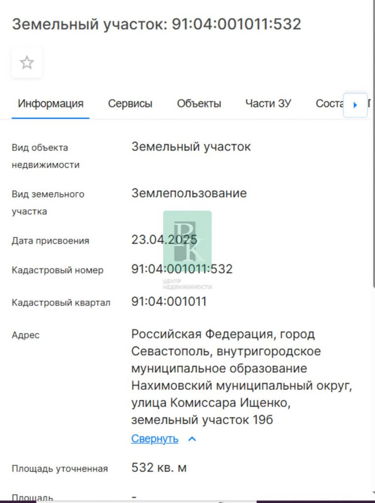 Продам земельный участок 5,32 сотки ИЖС с хорошими видами на город и море, район улицы Генерала Жидилова. Адрес: улица Комиссара Ищенко 19Б. Кадастровый номер:91:04:001011:532