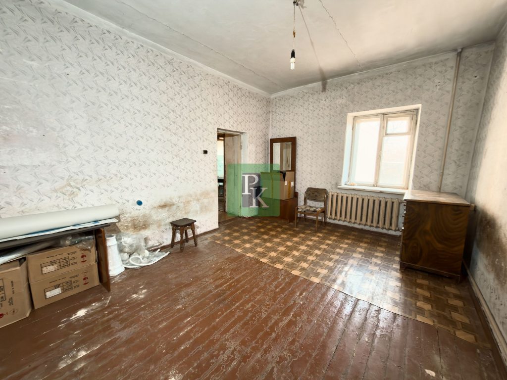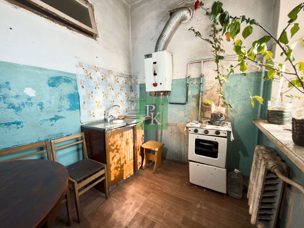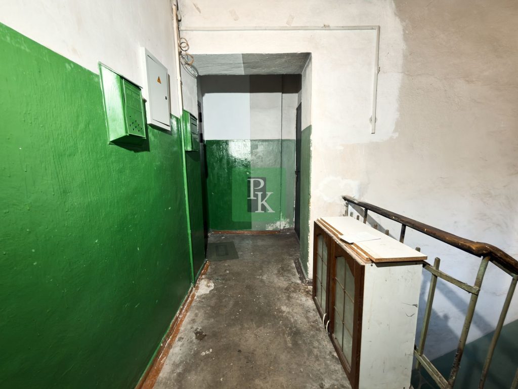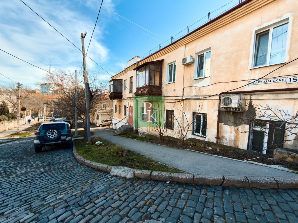 Однокомнатная квартира 33,9 м2, на 2/2 этаже дома. Расположена в г. Севастополь, Ленинском районе, ул. Партизанская, д. 15.