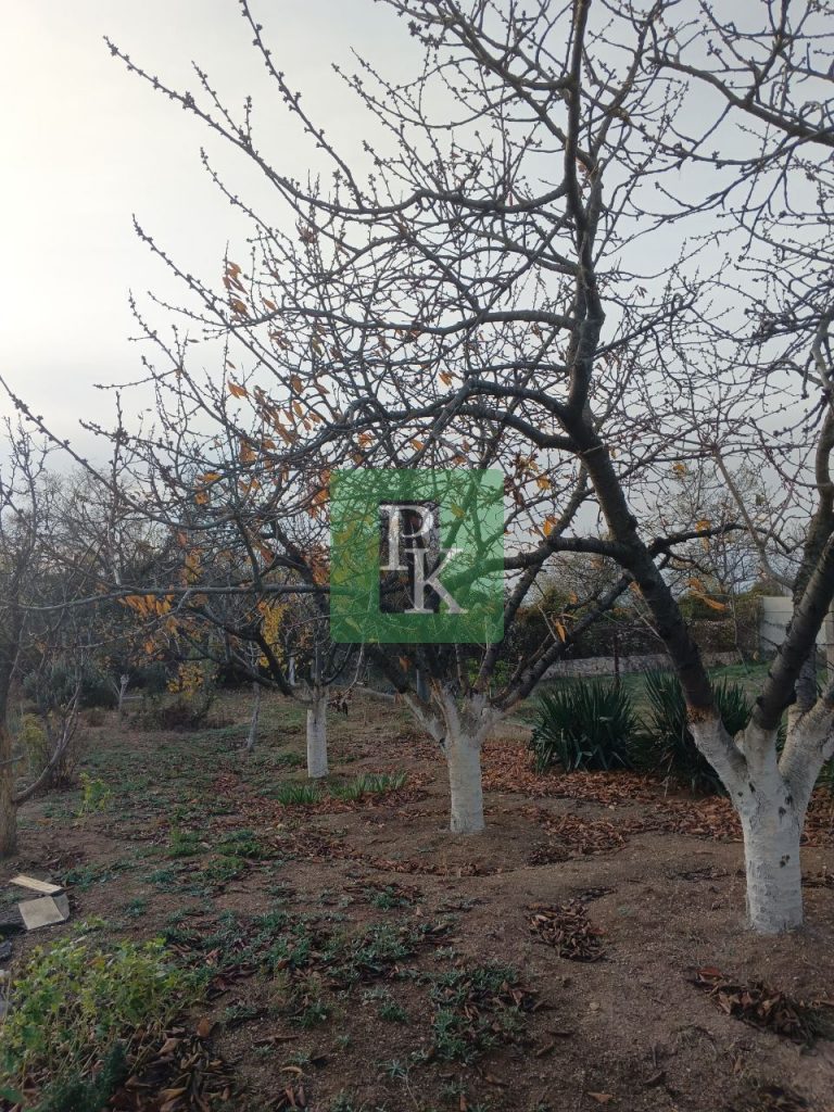Участок ровный, ухоженный, посажен молодой сад с плодоносящими деревьями, цветы и растения.
