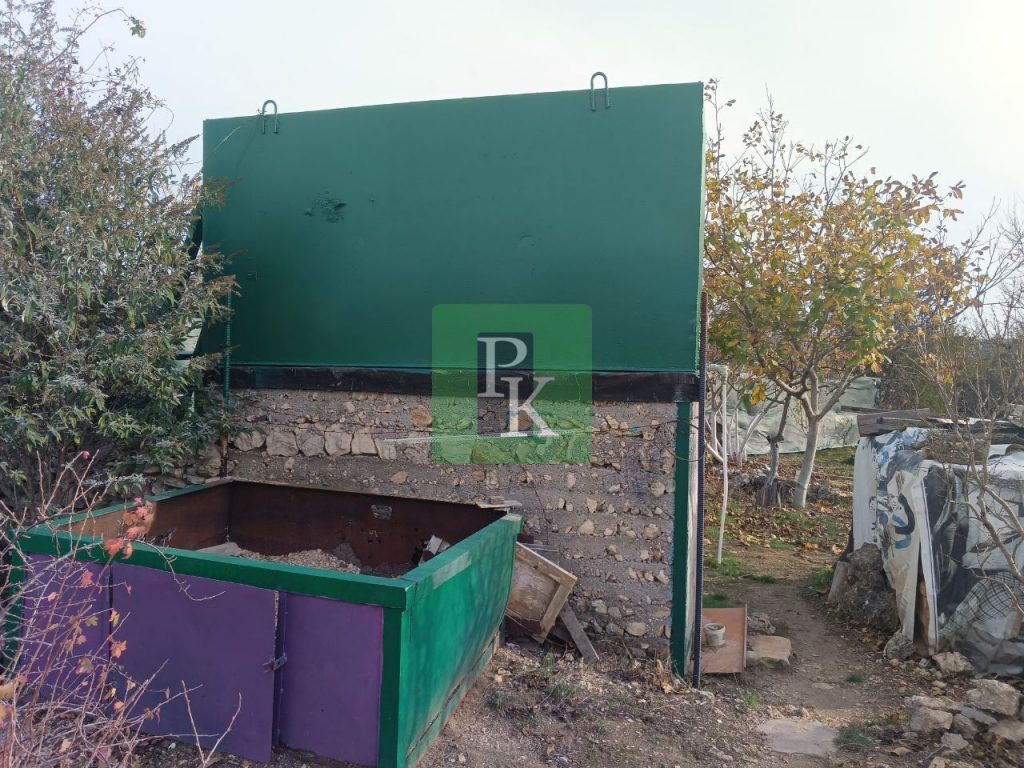 Есть ёмкость и хозяйственный домик.