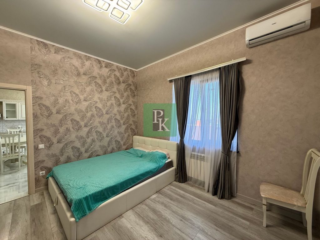 Дом 101,7 м² на участке 4 сотки СТ, одноэтажный. Расположен в г. Севастополь, Балаклавский район, ТСН “Поиск” (ул. Дениса Ракицкого). Коммуникации: электричество, водоснабжение, отопление, септик.