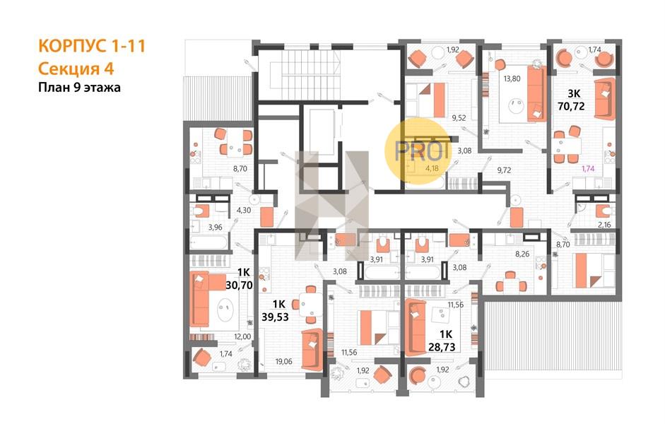 Квартира: 1 к 28,73 кв.м., 9 этаж в комплексе MOINACO Riviera, 2 очередь, корп.1-11, сдача: 1кв. , этажей: 15, адрес 60 лет СССР ул., , Застройщик: СЗ СДК.