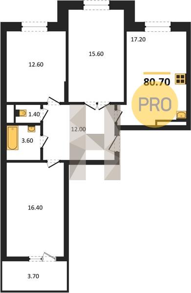 Квартира: 3 к 80,70 кв.м., 14 этаж в комплексе Жигулина роща, 3 очередь, корп.39-40, сдача: 1кв. , этажей: 18, адрес Мирное село, , Застройщик: СКГ.